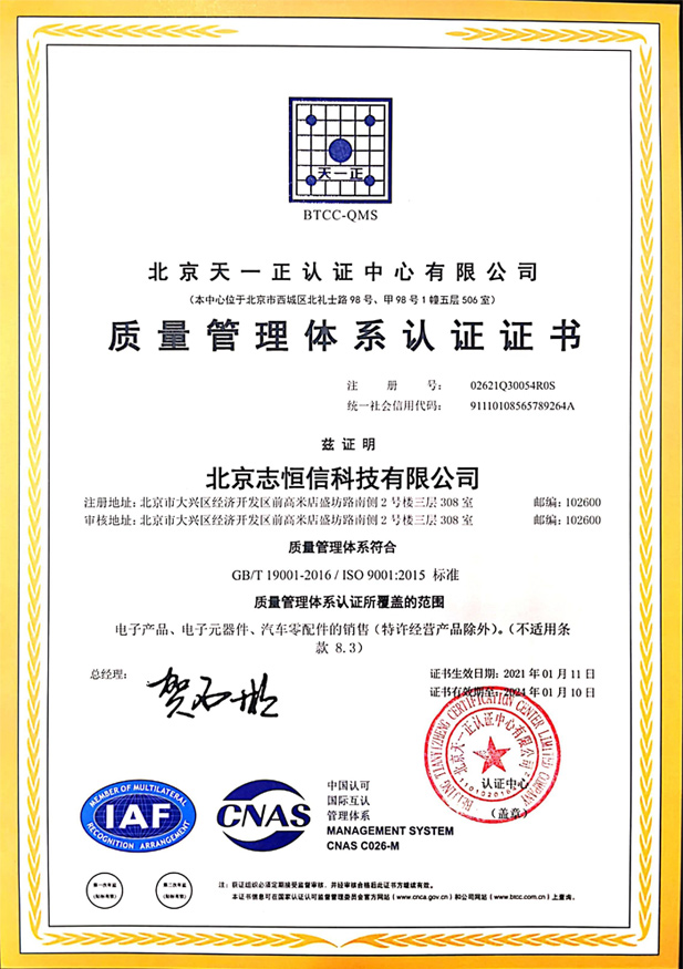 北京志恒信科技有限公司以产品研发.元件采购.焊接生产调试为主的企业,通过ISO9001质量体系认证和武器装备质量管理体系认证,位于北京市大兴区盛坊路2号仪器仪表基地2号楼B区3层。公司成立于2008年,经过几年的不懈努力,公司不断发展和壮大,科学的管理、完善的服务、全新的质量观念,专为客户提供元器件采购、SMT贴装、手工焊接、装配测试、系统集成、高温测试、老化、以及组装包装等全方位服务。主营电子加工业务包括:BGA焊接、BGA植球;研发样板焊接加工;有铅/无铅焊接;批量SMT加工。加工的能力包括:LGA、CSP、BGA、QFP、QFN、PLCC、SOT、SOIC、1206、0805、0603、0402、0201等,加工的产品涉及电脑主板及板卡、数码产品、仪器仪表、通讯设备与终端、网络产品、控制产品、光电产品、家用电子、汽车电子等众多电子产品领域。